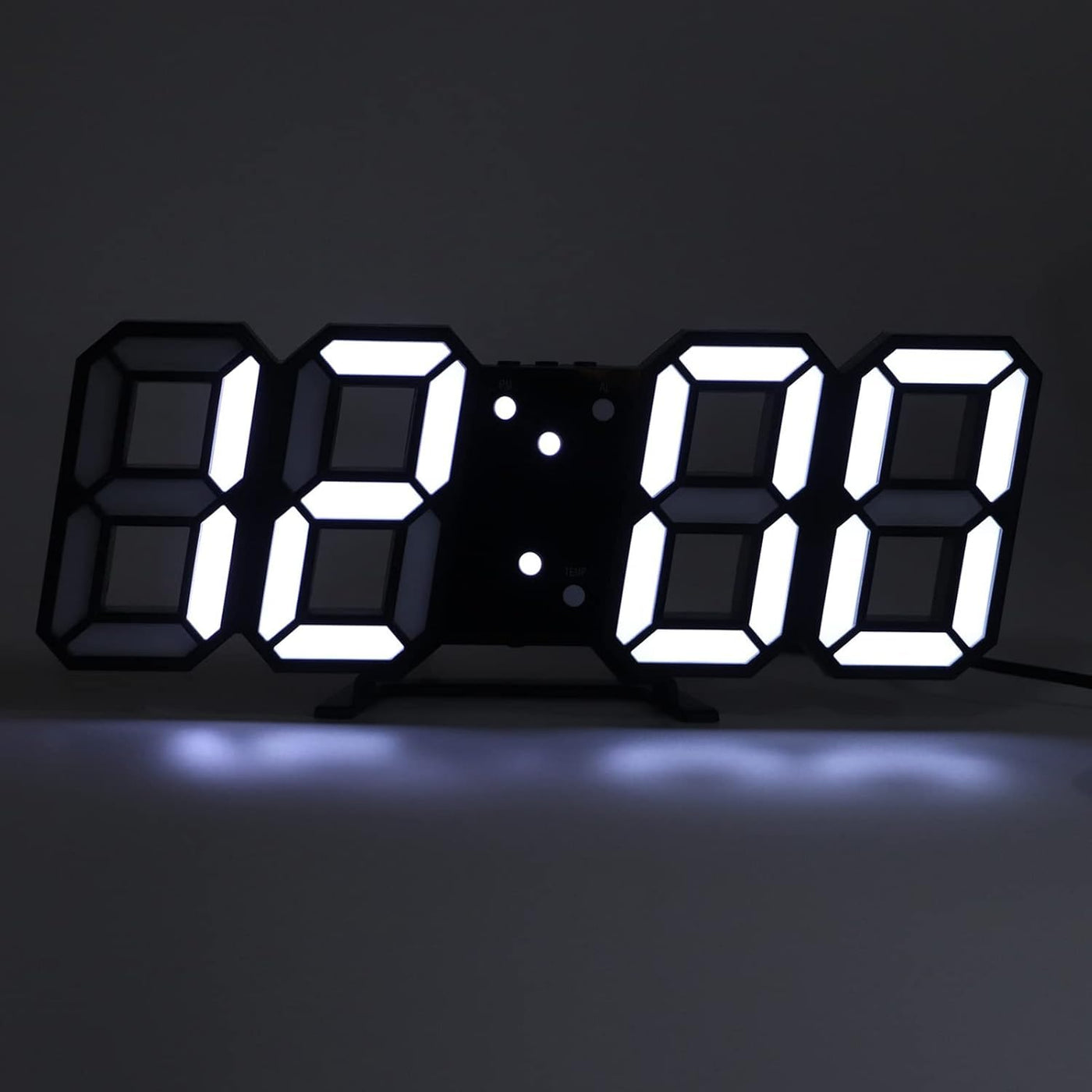 - The clock is equipped with a wall mount. Hanging on the wall is supported, and with the large 3D LED number display, time is clearly visible at a glance.