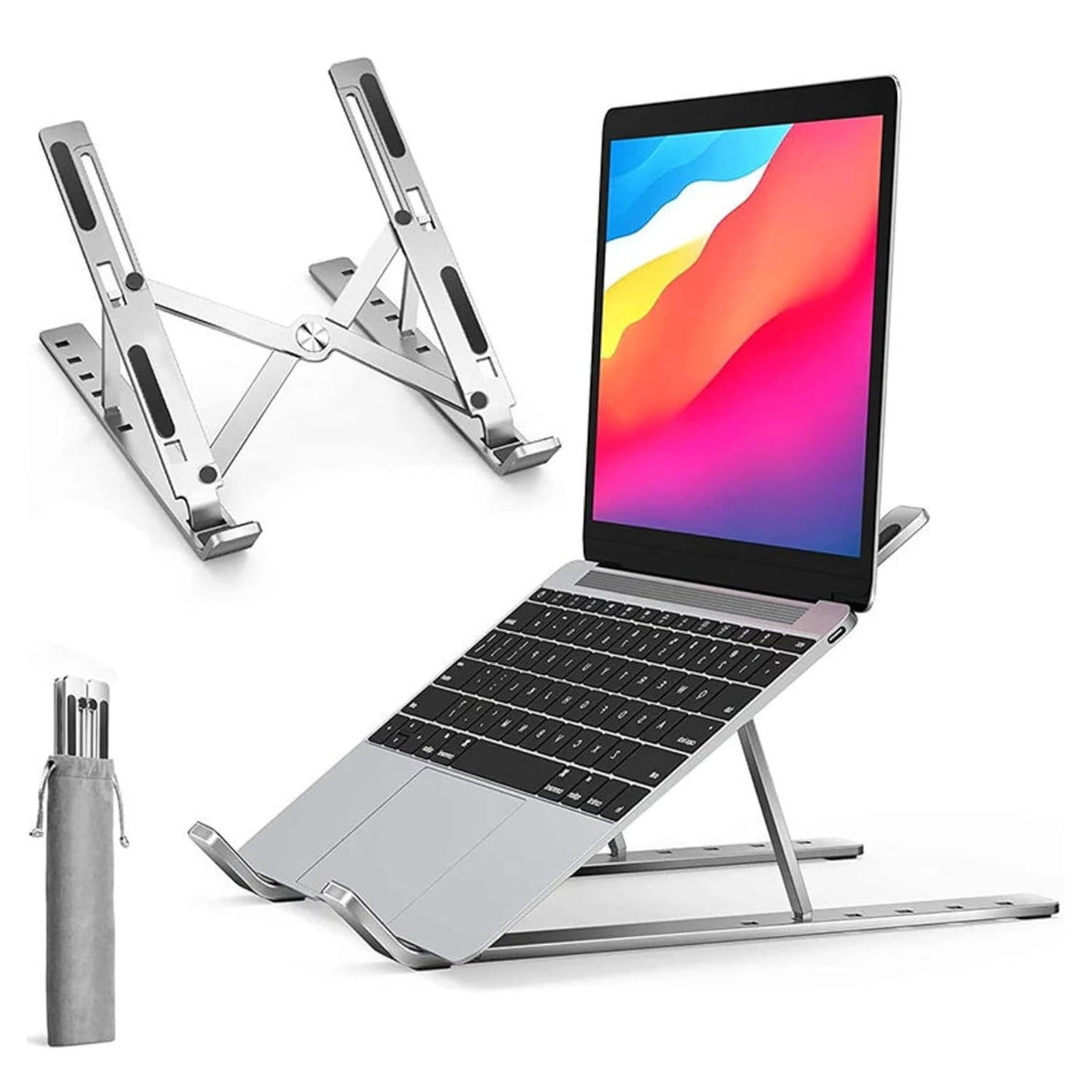 Sturdy & Durable Build – Made of premium aluminium alloy with non-slip silicone pads to ensure stability and protect devices from scratches.