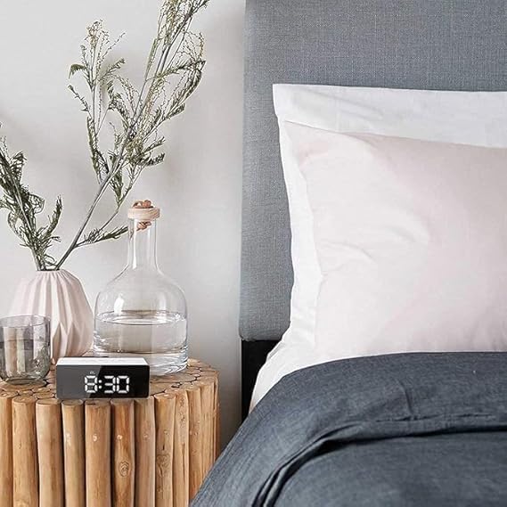[Large Numbers and Adjustable Brightness] This digital alarm clock features a 7 inch LED display that makes it easy to read large numbers from anywhere in the room.5 levels of adjustable brightness: 100%-60%-30%-3%-0% for easy nighttime viewing, automatic nighttime dimming mode, does not disturb sleep