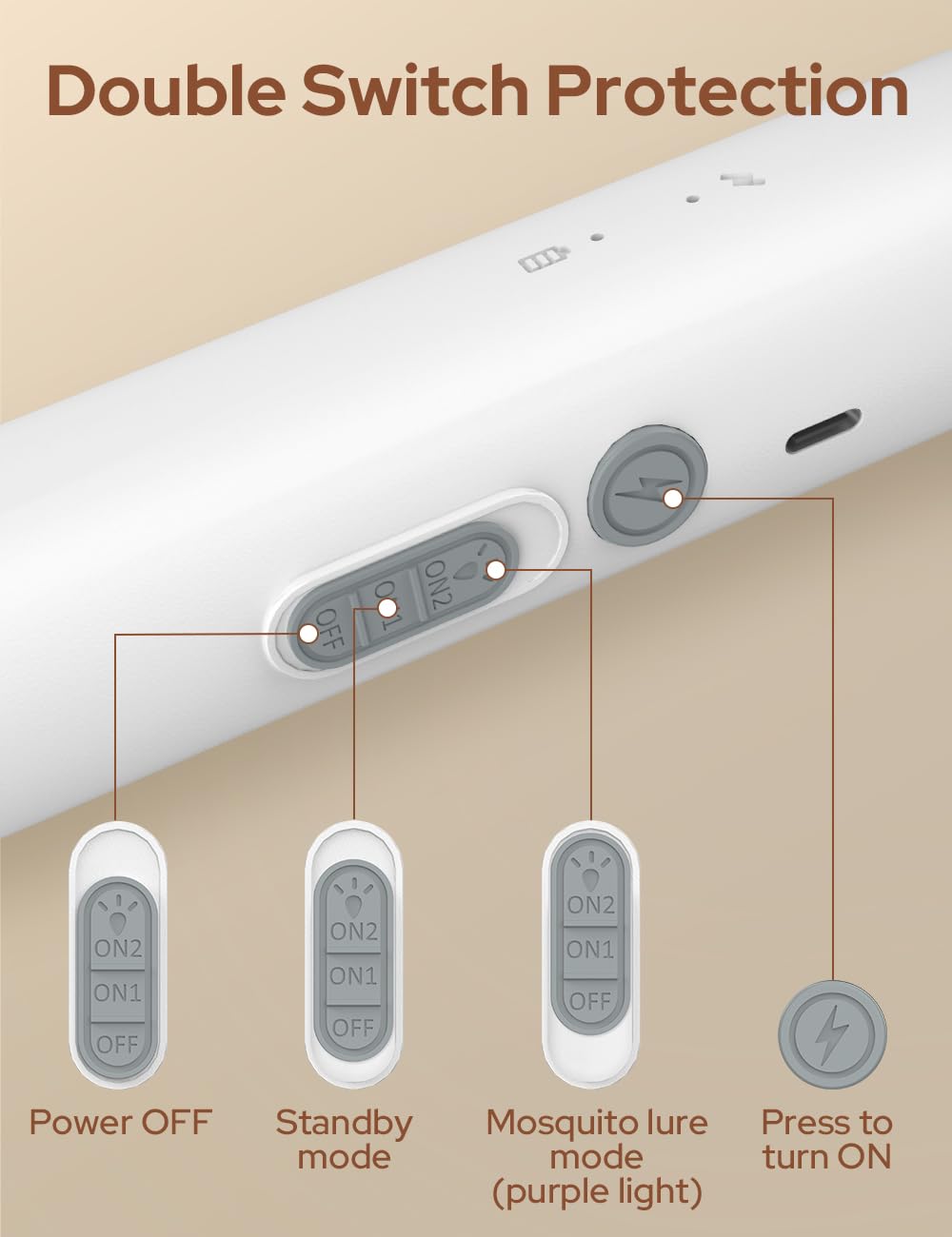 🦟Swivel and Foldable Design:Elevate your mosquito protection game with our UN1QUE Foldable Swivel Mosquito Bat. This 3-in-1 marvel boasts a hangable design, allowing you to effortlessly mount it on walls, place it on tables, or wield it in your hand for maximum convenience. Featuring a potent UV light lamp, it lures mosquitoes effectively, while its 1200mAh lithium-ion battery ensures enduring performance.
