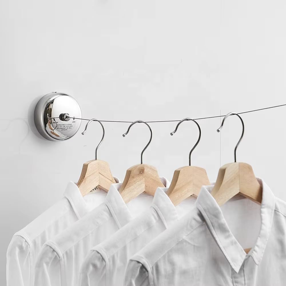 Retractable Clothesline, 304 Stainless Steel, 9.2 Feet Stainles Steel Wire, Modern Round Style, Wall-Mounted, Indoor Outdoor Laundry